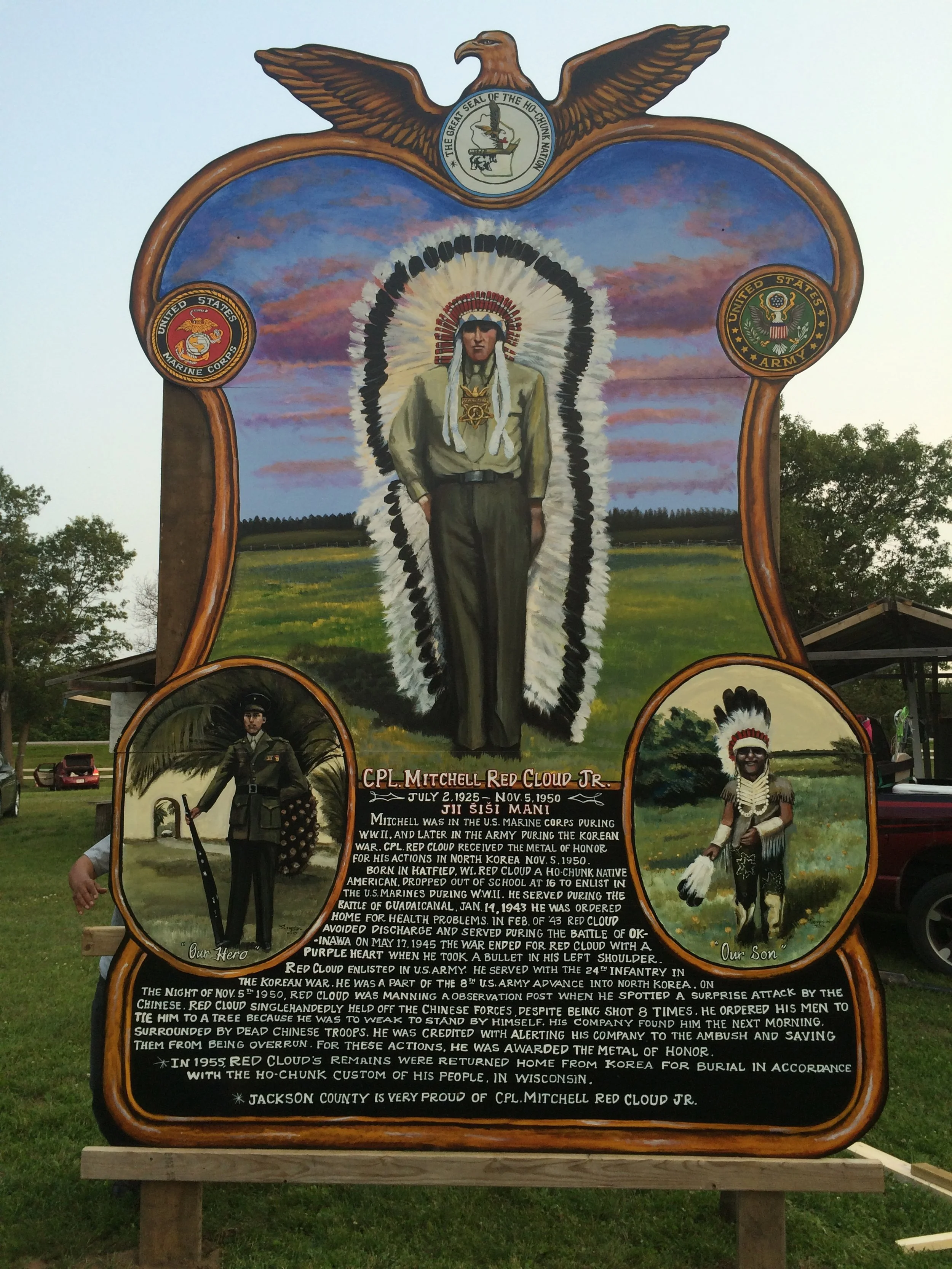 Mitchell Red Cloud Jr. Mural – Main Street, on the side of the Catholic & Baptist Churches